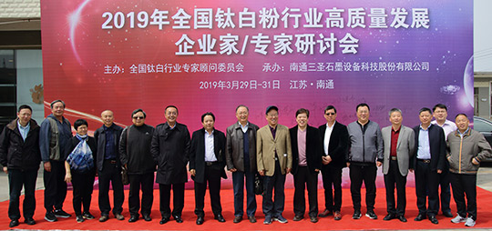 2019年3月29日至31日,2019年鈦白粉行業(yè)高質(zhì)量發(fā)展企業(yè)家/專家研討會(huì)在南通三圣石墨設(shè)備科技股份有限公司召開,全國(guó)鈦白粉行業(yè)來自四川、重慶、廣東、安徽、江蘇、浙江、甘肅等省、市的主要鈦白粉企業(yè)的董事長(zhǎng)、總經(jīng)理或技術(shù)負(fù)責(zé)人、全國(guó)鈦白粉行業(yè)專家顧問委員會(huì)的專家、國(guó)家化工行業(yè)生產(chǎn)力促進(jìn)中心鈦白分中心主任、鈦白粉產(chǎn)業(yè)技術(shù)創(chuàng)新戰(zhàn)略聯(lián)盟理事長(zhǎng)等近三十位企業(yè)家、專家、領(lǐng)導(dǎo)齊聚南通,聚焦鈦白粉行業(yè),共謀高質(zhì)量發(fā)展。