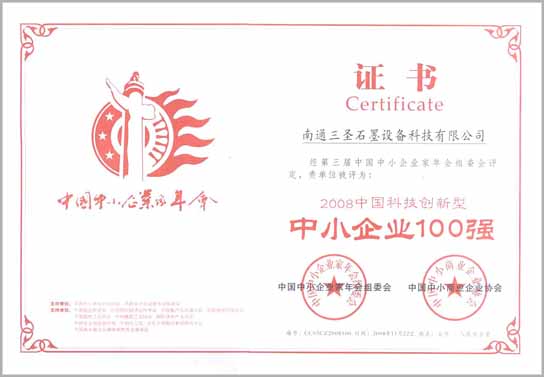 經(jīng)第三界中國中小企業(yè)家年會組委會評定,我公司被評定為:2008中國科技創(chuàng)新型中小企業(yè)100強