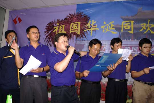 9月22日,全體三圣人歡聚一堂,同慶祖國華誕,共迎中秋佳節(jié)。感人至深的手舞《感恩的心》、詼諧幽默的小品《三圣家庭》、激情澎湃的詩朗誦《我的祖國》、獨(dú)樹一幟的三句半《話說三圣》以及相聲、快板書等一個個三圣人自編自演的節(jié)目集中體現(xiàn)了三圣大家庭的企業(yè)文化精髓,同時表達(dá)了對祖國母親的深深祝福。由三圣人自己點(diǎn)燃放飛的69盞祝愿燈將聯(lián)歡會推向了高潮,大家祝愿三圣事業(yè)六六大順,三圣好運(yùn)長長久久。董事長帶領(lǐng)高管團(tuán)隊(duì)合唱的一曲《朋友》充分彰顯了三圣管理層的超強(qiáng)凝聚力和戰(zhàn)斗力。晚會在大合唱《同一首歌》的歌聲中圓滿結(jié)束。